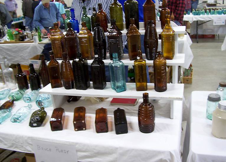 Bruce Purdy brought along a great assembly of colored bottles for sale.