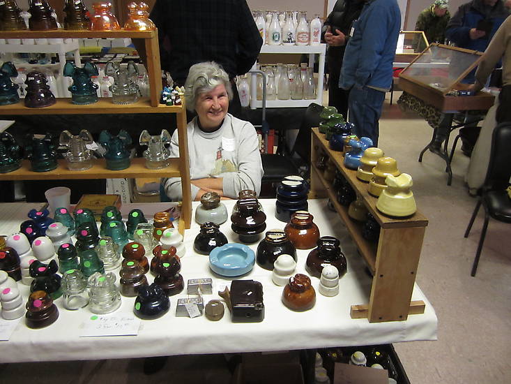 Al and Carol brought a nice assortment of insulators and hardware to their table. I think I was following in Al's tire tracks in the snow, as they made the drive from Darien Center, NY along the NYS Thruway early this morning. Didn't I just see pics of them at the Yuma Show just a week or so ago? |
