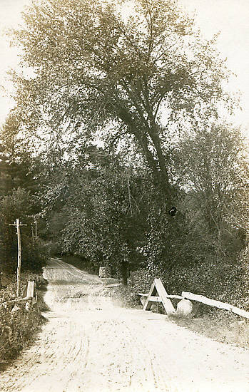 Tranquil scene once in New Hampshire with a telephone subscriber line along this unpaved but apparently well traveled dusty road ;-)