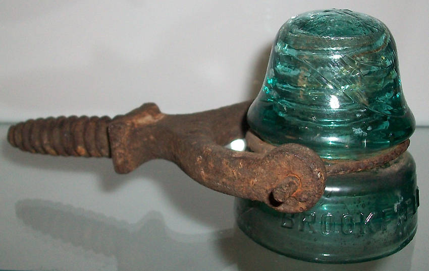 Up for auction is this FANTASTIC CD 160 BROOKFIELD antique glass telegraph insulator with the ORIGINAL Holmes Tree Bracket still attached!! EIN [010] with a backwards 4 on the dome. It is light aqua with small potstones floating around the dome and skirt areas and is in VNM+ condition. These are just not offered for sale very often, with this one being in remarkable condition!! Spectacular piece!! If you love insulators in AS FOUND condition, don't wait on this one!! Asking $85 + shipping. PayPal using Family/Friends preferred. Postal Money Order or Personal Check if we have done business before. First email! |