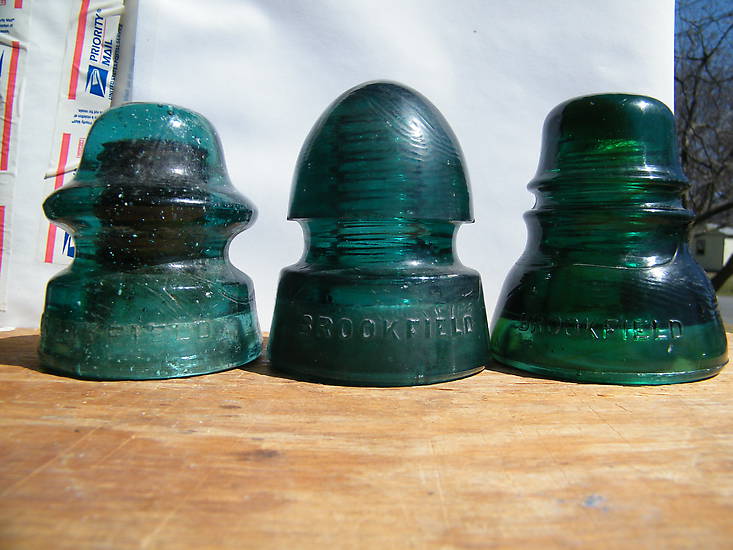 My plan was to go up into the Catskill Mountains for my frst time this year. Was going to go south after hiting the Livingstonville flea market through Grand Gorge and then back down the mountains to the Sunday Woodstock flea market. Sign says April through October for the Livingstonville flea market but there wasn't one today. Didn't feel maybe wasting my time in case there was also no flea market down in Woodstock so I changed my plans and headed north and then back down the moutains. My first stop yielded the Brookfield CD 152 hoop skirt which I purchased at an indoor flea market where they price their insulators by the size verses what the insulator is. Guess I shouldn't expect them to know what is what. The Brookfield centered in my pic was found at the same antique shop where I found a couple Hawley ponies being the eyes of a snowman maybe one month ago. Just last week I was told by the owner he had some insulators in his barn. Don't know if this CD 149 was one of them being there was nobody around. The insulator was sitting outside along a Brookfield D162.1 and a patent May 2 1893 Hemingray CD 121. I left those two and stuffed the dollar amount indicated for the 149 inside one of them with a thank note. This CD 149 is actually the second I have found to date in my area. It is dark aqua with some amber swirls and ghost embossing of Brookfield. My first 149 was found maybe a couple years back where I picked up my third and last insulator today. It is a round base Brookfield CD 164 with snow. Funny thing here is that when I found that 149 I also found a Brokfield Creb beehive with the orange varnish or something in the threads. For some unknown reason the seller only had the creb in his store. Both the creb and this 164 was on a crossarm at an auction next door in the same building, Don't ask me why he only put the creb out. Maybe it was because of the patent dates and he figured it would go fast. |