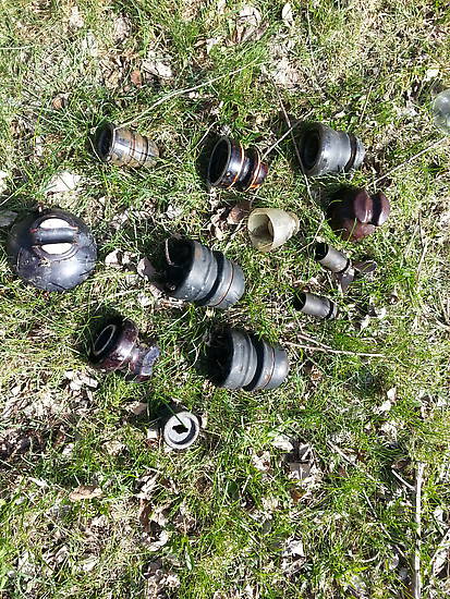 Here are some interesting porcelain and composite pieces. I like the big 2-piece ones, and the spool with the slot in the middle instead of a round hole.