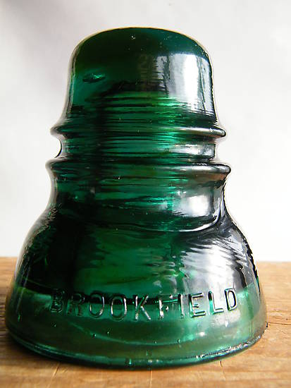 The base color appears to be a dark aqua. Has lots of amber so it looks dark green from a distance, Has a nice bubble (will add pic to show) on left side and a skinny oblong opened bubble coming down the right side of dome. Also has some small junk here and there along with deep straw lines. Only imperfction is small side flake on inside of inner skirt. First emailer will have some nice insulator added to their collection for $30.00 east of Mississippi, $32.50 west of Mississippi or $42.50 USA dollars to Canada. Pay Pal non-fee, personal or money order checks accepted as payment. Lets try $17.50 plus actual shipping cost. Send me your zip code where you would want shipped anywhere in the USA |