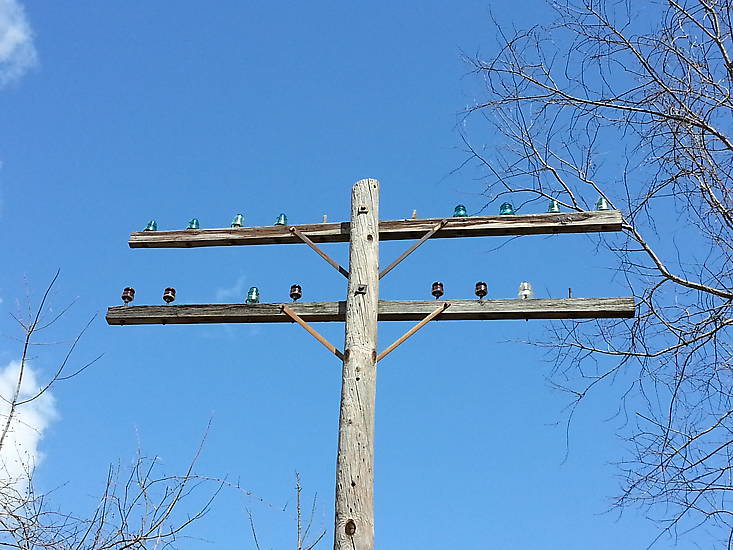 We noticed these "narrow" looking beehives on the lower crossarm.