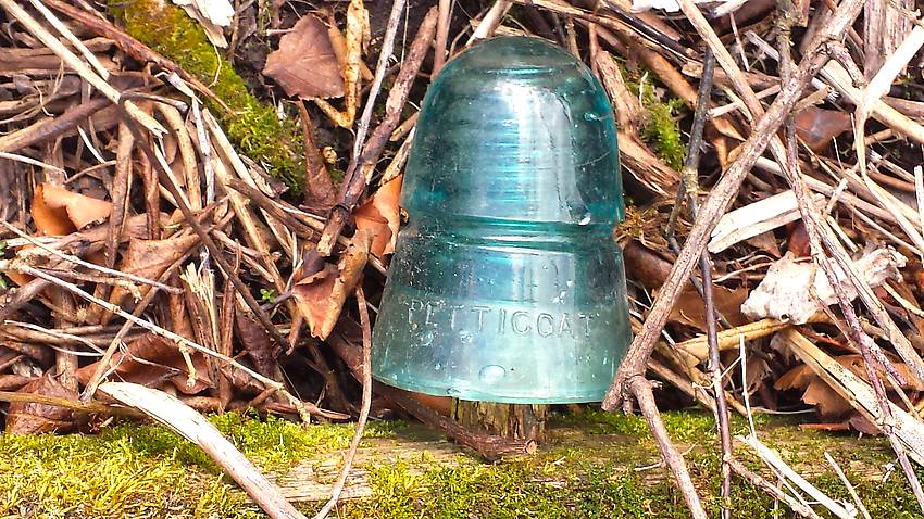 Every now and then we would come across some downed poles. This is what was on one of the first downed poles. H.G.CO. PETTICOAT Beehive!