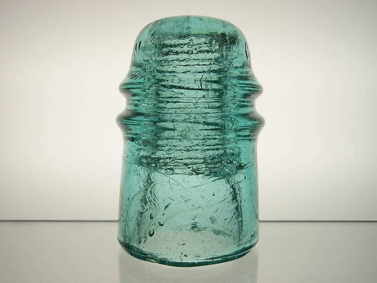 This is one of the AM. tolls from the six-pin cross-arm that was sinking and rotting into the ground. All insulators were still in place except for one toll. This piece looked like a Pennycuick product until I saw the crown embossing. Wobbles and leans. |