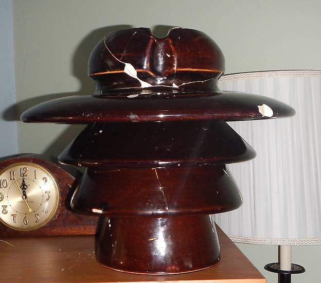 I need to repair a few chips and blemishes along the crown fracture lines still but but here it is ... The unique 15" wide multipart used by the Tennasee Electric Power Co on their 1910 era Hales Bar transmission line ...Jeffery Kramer, Mike Green and I were only able to recover three repairable examples of these total from the line but we hope to get one or two more someday ... Definitely a cool piece with the rare New Lexington marking which is one of the scarcest manufacturer marking stamps in the hobby. |