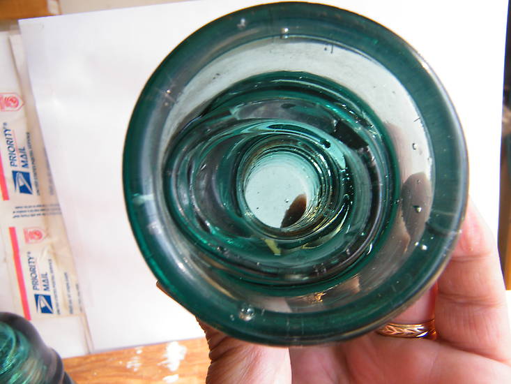 This view shows well how much the inner skirt was pushed over to make contact with the inside of the skirt. Also it's obvious that the inner skirt was broken when it reached the taper on the wooden pin. The threads behind the Star would indicate that the mandril actually formed them. At least I would think so. |