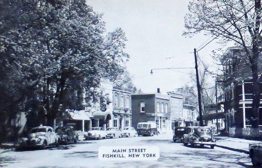 Fishkill, NY c.1948, Downtown, Old Cars, Electric Utility Lines, Street Light