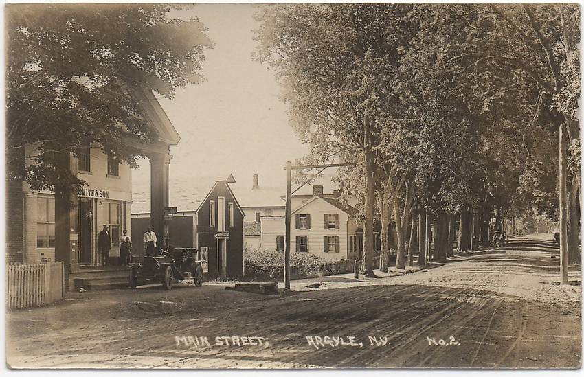 Argyle, NY c.1910, Phone Openwire Alley Arm Pole, General Store, Early Car