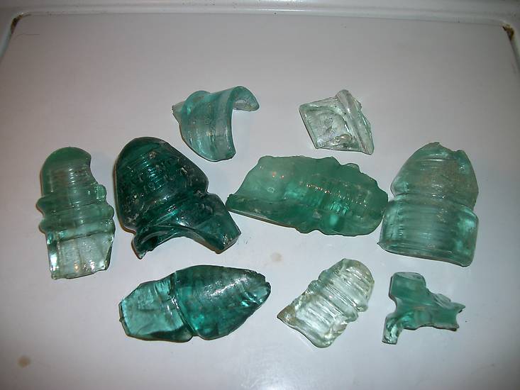 Among the insulator shards found were 120, 121.4, 132, 133.4, 124, 124.2, 124.3, 136 B&O, 125, 133.1, 145 Petticoat "B" and "D", 134, 162 and spools, some of which is pictured here.