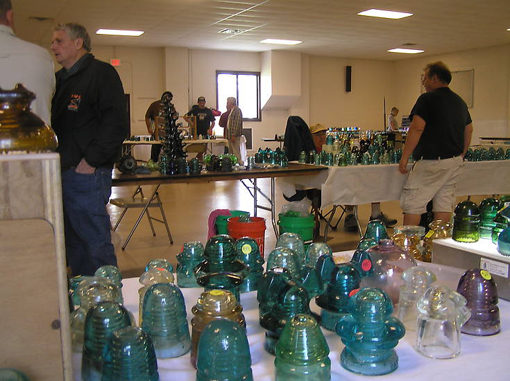 Immediately behind Larry Veneziano is a very large insul-bug larvae, no doubt the same type of monster that ravaged a show a few years ago that Richard Case finally was able to conquer. Matt Weldon talks over sales stock with Mike McLaughlin. Ken Orchard skillfully but unsuccessfully hides behind his table, but his cap gives him away. Michelle Kotlarsky can be seen in the corner by Russ Frank's sales table with some CD 155s in her hand. I wonder what she's doing?! |
