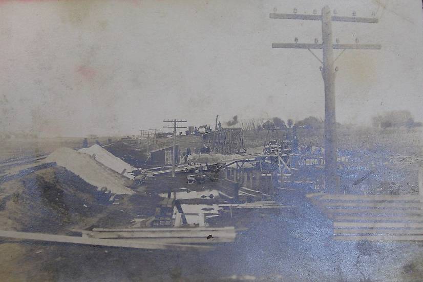 Location Unknown, c.1910, RR Track Construction, 6-Pin Telegraph Line