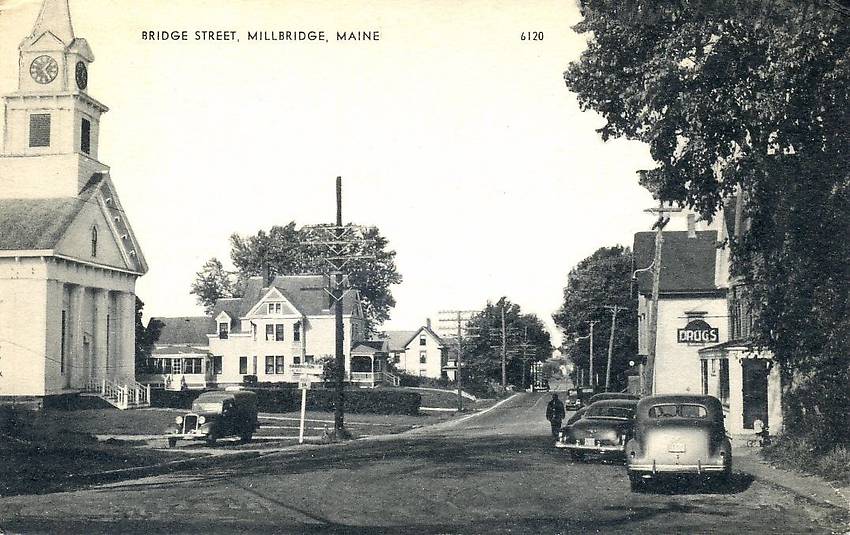 Millbridge, ME c.1950, Old Cars, Telephone, Electric Openwire Pole Lines