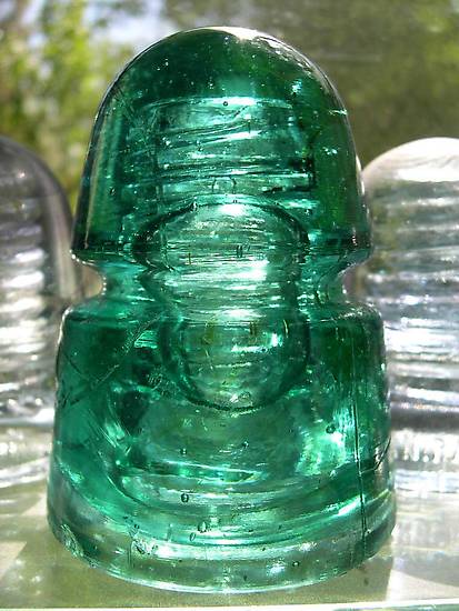 "B" beehive CD 145 [070] with a HUGE bubble that shows above and below the wire groove. The color is a rich darkish aqua with good light penetration. The condition is excellent. The bubble is partially open to the threads above the WG. It's difficult to value / price this type of item fairly so I'm starting at a point that will make me happy. $250 USD |