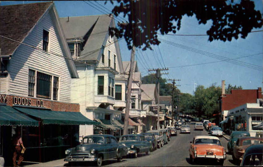 Vineyard Haven, MA 1950s Town Centre, Old Cars, Electric Distribution Pole Lines