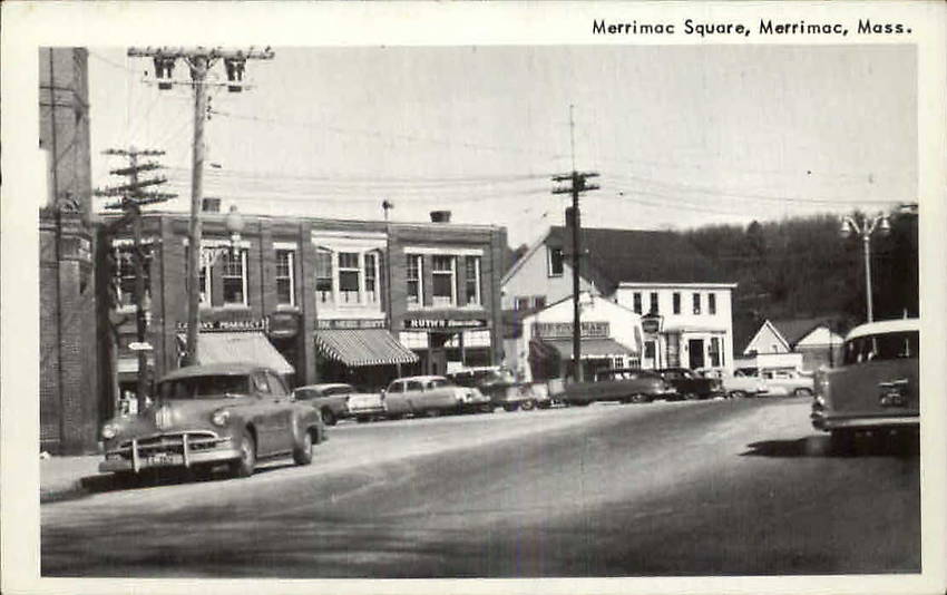 Merrimac, MA c.1957 Downtown, Old Cars, Local Electric Distribution Lines