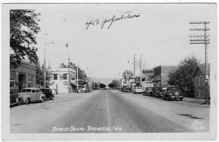 Incandescent "gumball" style street lights typical across the US and Canada during the 40s and 50s are also seen here which once illuminated this Washington State business district ;-) Note the "450 population" handwritten along the top of this image... |