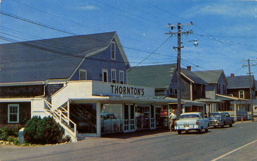 The latter were incandescent and operated via a street series circuit. In order to provide lower and safer open-circuit voltage along its route (street series loops inherently have a dangerous open circuit voltage) a small "paint can" transformer stepped down the lighting circuit voltage to a safer level. Economy of lower-voltage fixture wiring, sockets, lamps, etc., were also realized by this utility method. The latter transformer can be seen on the uppermost crossarm on the left. Most of what you see upon this pole line stood until the 1970s when 13.8kv primary was the rule along with mercury vapor street lights. A two-pin fire alarm telegraph crossarm is seen immediately beneath the utility wiring which was owned by the Brockton Edison Company at the time. Scituate, MA is a small coastal community about 20 miles southeast of Boston. |