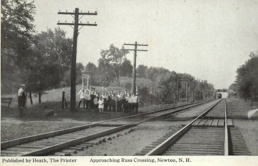 A passenger train was quickly approaching as we see in the not-too-far distance in this small New Hampshire community.