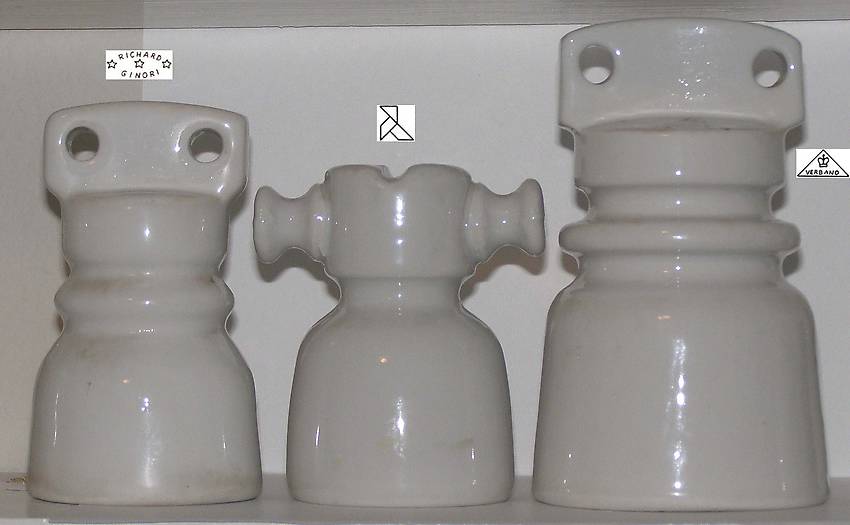Here are three less common porcelain pieces - all in excellent shape - actual postage additional Spook - 3 7/8" tall ink stamped RICHARD GINORI on the top -- $25 Cool shaped T-bar incuse marked with the "puzzle" logo from Spain -- $25 Spook - 4 5/8" Tall - ink stamped VERBANO on the top -- $30 Or take all three for $70 plus actual postage |