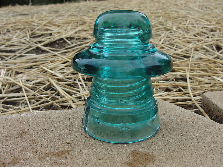 This insulator is in good overall condition. There are two very shallow pinky sized flakes that run from the lower skirt to the first wire groove and a quarter of the inner skirt is damaged. The rest of the insulator is in great condition and the glass is clean and shiny. Damage sounds worse than it is, still a great display. Asking $55.00 plus shipping. Payment by check, money order or PayPal the non fee way. |