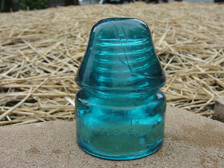 Another insulator that is in very good condition. There is a small half fingernail sized base slice that is confined to the base and also some slight wire groove blemishes. The front is Embossed Pat App For and the rear a large number 3 and small letter a under that. Asking $55.00 plus shipping. Payment by check, money order or PayPal the non fee way. |