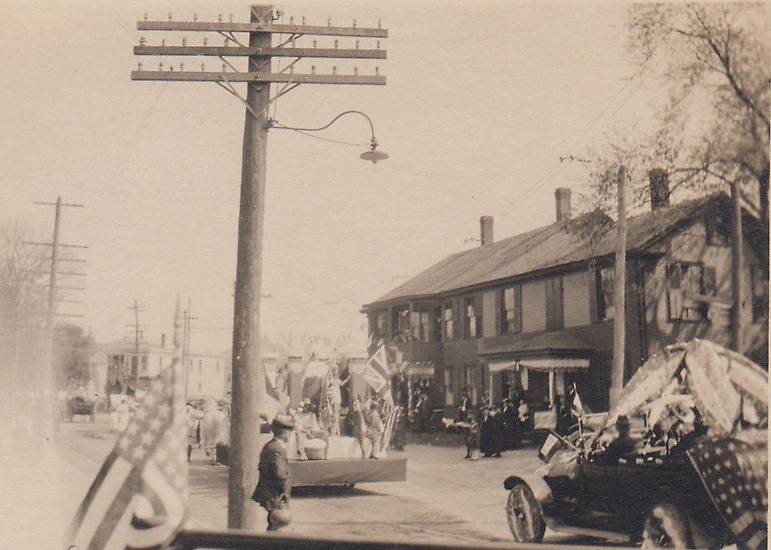 This construction practice quite likely was among Ma Bell's standards. I quite fondly recall seeing a few stretches with similar close-arm construction along subscriber leads through the late 60s here in the south-of-Boston vicinity. It is possible the example in this image had something to do with keeping a safe distance from the inherently dangerous, high-voltage, open-circuit voltage of the series street light cable that passed through/beneath the phone openwire in this picture. Given the multitude of crossarms upon the pole connecting in the background it is quite possible this was a toll lead or predominantly so. |