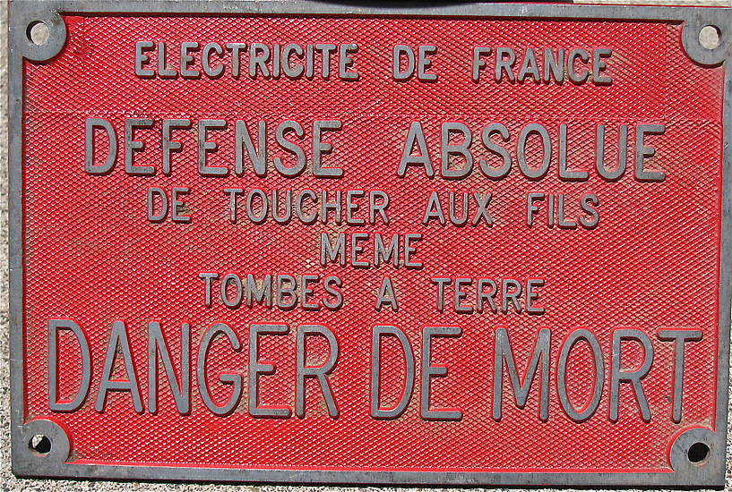 Here's a scarce heavy metal sign warning to not touch wires with danger of death. Measures approximately 7" wide by 5 inches tall. Mint condition.