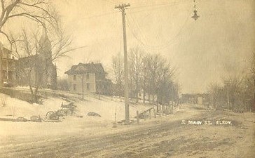 Elroy, WI c.1912, Snowy Scene, Electric Utility Pole, Spanwire Street Light