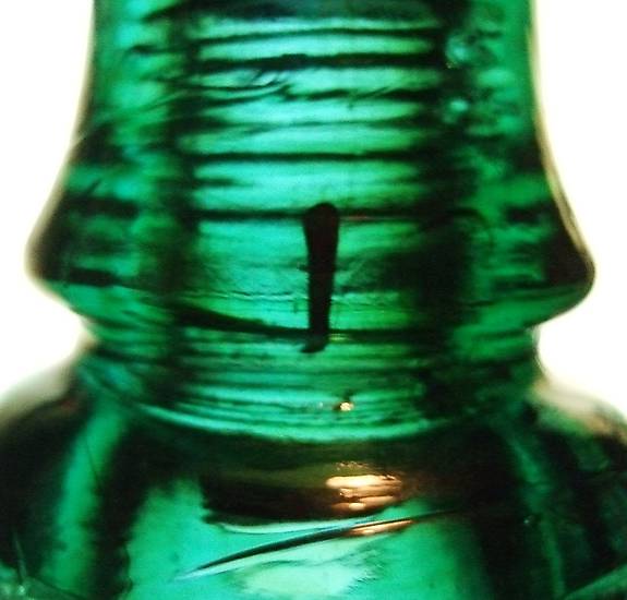 I found this while cleaning some of the insulators from a recent collection I bought. Its dark aqua with a little amber swirl.