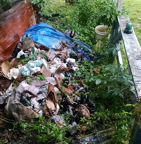 I was out with my son, stopping and seeing some people about insulators. At this stop, the man indicated was about a pick-up truck load of insulators. They are sitting on the back porch of an abandoned house set for demolition in the next few weeks. Someone wrapped them in paper and boxed the lot. They now sit uncovered, soaking wet on this porch that is falling in soon to be fill. If anyone has interest, let me know I can give you the contact info. They are mainly Hemingray 40's 42's and beehives, along with a few CD 147's |