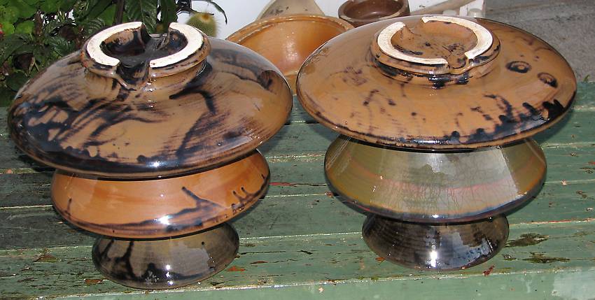 Did the rounds of 2nd hand shops last Friday and with the 'Power of positive thinking', I came across these two 3 piece multis sitting up side down on the floor by the backdoor at one shop. They had just come in and had been used as plant pots in a garden as they were filthy on the top. Did the deal and once I got them home and scrubbed the dirt off, they just glowed. These are typical of early unmarked large multis used here in the 20's - 30's and we attribute them to Ohio Brass. The top shells are slightly different with one on the left being of the same style as another I have with the sand blasted '3OB7' date. I think they are stunning! |