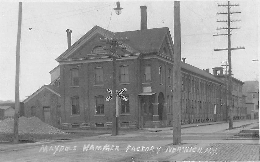 There are a lot of early lines standing here along with plenty of glass insulators too ;-) Electric lighting and comms circuits were strung upon these early pole lines in this Conecticut city. Underarm insulators (possibly Browns' ponies) are somewhat visible beneath the top crossarm on the pole on the far right. |