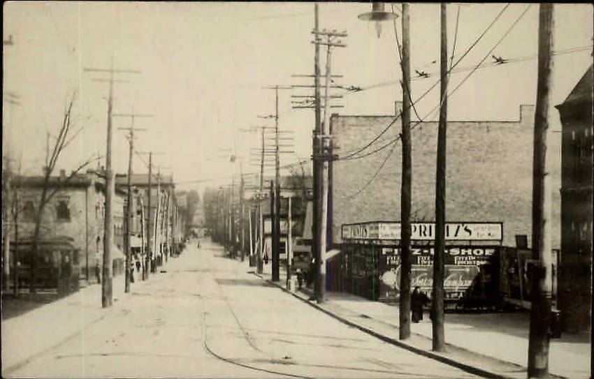 Pretty "busy" scene here with plenty of mixture of early pole line construction in this Pennsylvania town representating the overhead architecture of the forementioned utility providers...