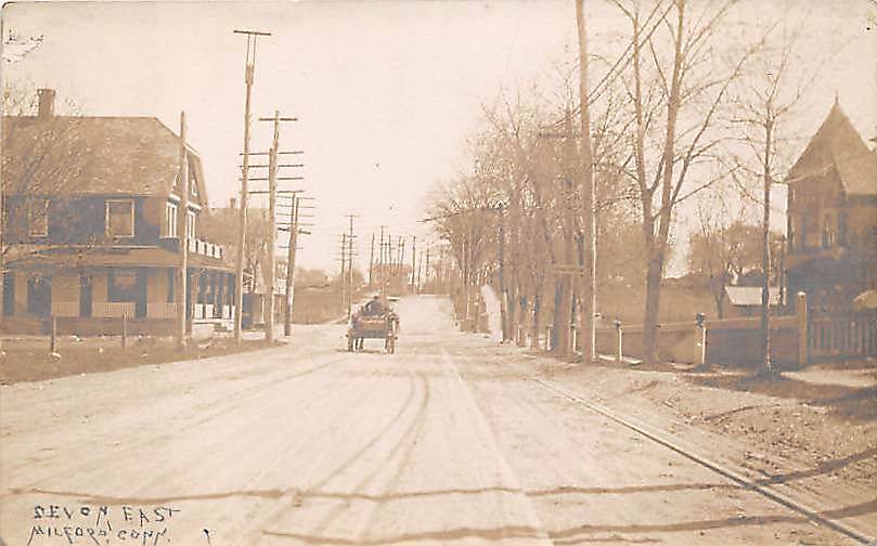 The latter were either for fire alarm circuits or (less likely) electric lighting customers; mounted higher above the four-crossarm telephone lead that was strung beneath. It was common practice before the teens to mount fire alarm circuits above all other utility wires. Otherwise when strung beneath, fallen electric lighting and/or comms wires sometimes interfered with vital fire alarm telegraph operation; once considered a highly valuble community means of fire-reporting communication before the widespread popularity of the telephone. Typically electric service wires were strung upon separate poles. Commencing in the teens standardization of pole line construction among overhead utilities provided some added safety along with covered paired telephone cables along pole routes. Heavy duty direct current lines for trolley service are seen on the right. |