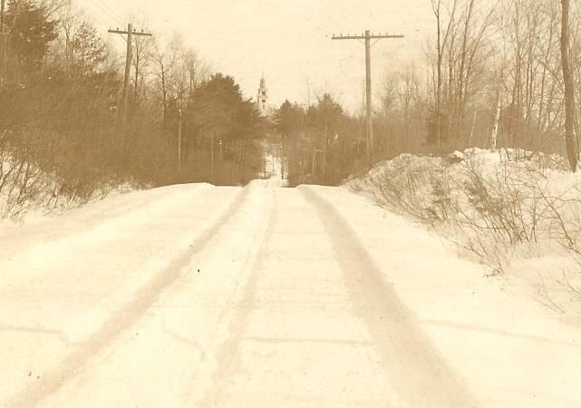 Snowy Country Road, 100 Years Ago, Double Openwire Utility Pole Lines