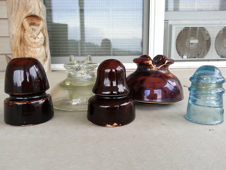 Final pictures from our antique mall & flea market finds. Pittsburg U-148 and U-179, and a nice blue McLaughlin CD 106 in front, Kimble CD 231 with cooling rack marks on the base and what I believe is an unreported (no, turns out Elton just forgot to put it in the Value Guide) PP U-730 with a gorgeous glaze and flash over marks on it. |