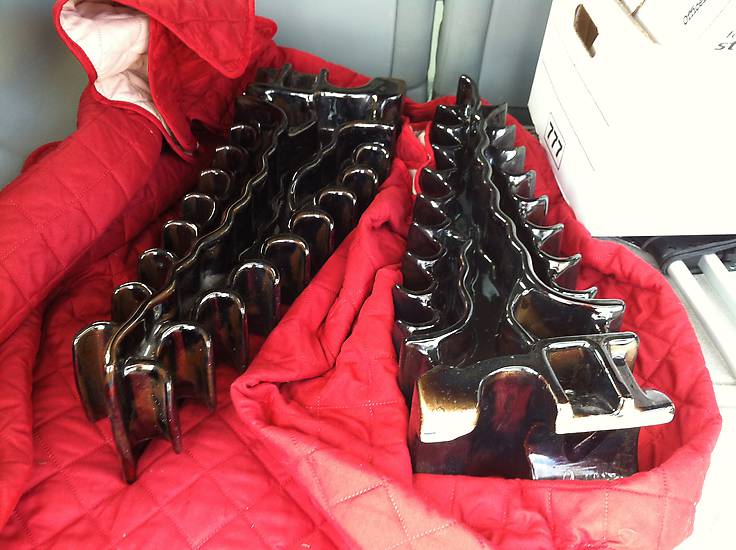 Just acquired. Seller said someone brought them into her antique store and said they came off a ship. Both are ink marked on the unglazed firing rest with a " US" split by an anchor.