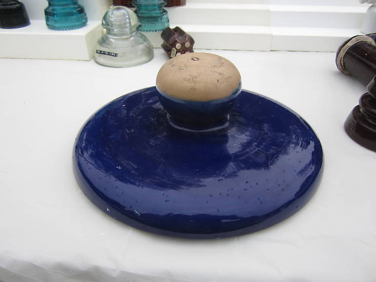 Zac Mirecki (Hartford, CT) had this odd cobalt suspension on his table. It almost looked as if it was re-purposed as a cover for a crock or ???. If anyone has any info for Zac please get ahold of him.
