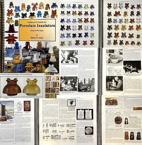 Finally the book is available after nearly 5 years in the making. It is 8-1/2 x 11 spiral bound with 278 glossy pages with nearly 1500 photographs most of which are in color. A full 20% of the U-numbers have been deleted and styles combined to hopefully make it easier for collectors -- more than 8 months working on that part of the project. All 1012 unipart styles are shown with color reference photos of actual specimens. Each style has been assigned a Unipart Number (U-Number) and part of the photographed insulator is cut away to show the pinhole, petticoat(s), glaze-weld, and other features. In addition to the U-Chart of 1012 pin-type styles, there is an extensive history of the development of porcelain insulators including photographs showing how they are made. There are nearly 500 historic and other photographs (most in color) showing key and special insulator styles and to compliment the very detailed history of the more than 54 companies that manufactured pin-type porcelain insulators. There is an appendix detailing all the known Fred Locke markings. Another appendix was written by Michael Spadafora summarizing his decades of researching and hunting Fred Locke insulators with characteristics to aid in dating your Fred Locke insulators and learn more about how the "Father of Porcelain Insulators" evolved insulators manufacturing techniques and styles to produce high voltage insulators for the rapidly growing electrical industry from 1894-1904. This is a "must have" reference book for anyone with any interest in porcelain insulators were it be simply cataloging your collection or spending time learning about the industry! You will be surprised at how much different it is compared to the old Tod guide book, which did not have a single photo. New companies have been added to the company history chapter with expanded and corrected histories of each that includes old photos, too. At least 3 times more information than the out-dated Tod book. Book is available NOW and will be available at the Mid-Ohio Springfield show Nov. 6-8. Price is $49 plus $5 shipping (Canada is $20 shipping). Send personal check or money order (5415 Lexington Cir, Lumberton, TX 77657). Or use PayPal send to friends and family method to my email address (Elton@r-infinity.com) |