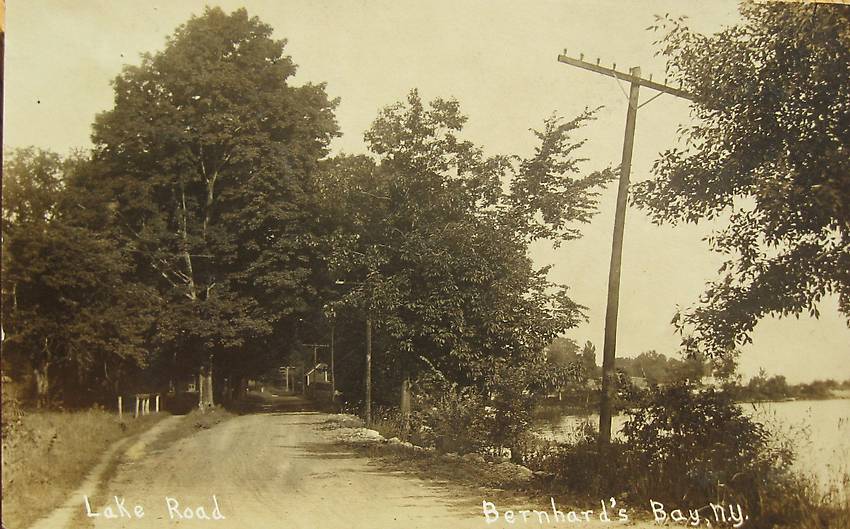 Peaceful scene alongside this lake with an open wire telephone line pararelling a dusty road in this New York State community a century ago ;-)