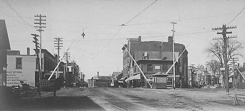 There is plenty of diversity here among the rather primitive-looking telephone, telegraph, fire alarm telegraph, trolley service and electric lighting circuits in this image! And I will bet some pretty desirable insulators were either within view or close to where this image was taken ;-) |