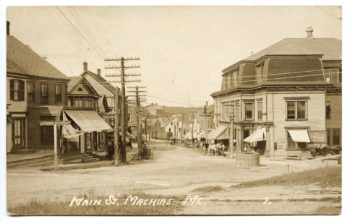 Machias, ME 1912, 4-Crossarm Phone Openwire Line Through Town Centre