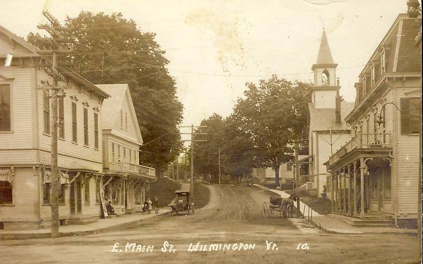 Wilmington, VT 1914, Village Centre, Busy Utility Crossover Openwire Pole