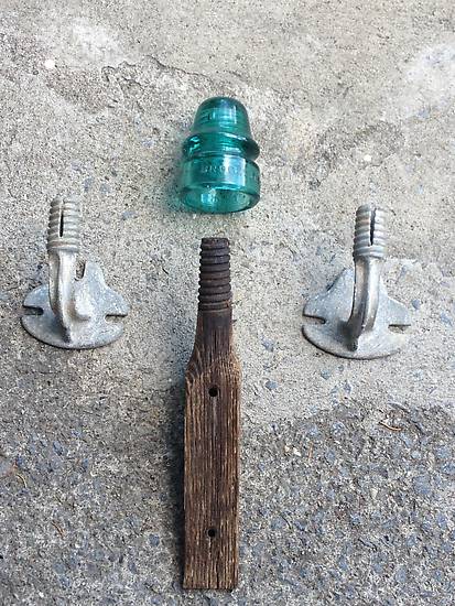 Picked the CD 134 up at my Sunday flea market fir $1 only because I noticed when taking inventory last week I didn't have that CD number represented on my outside tree display. On my return home I made another stop and found the metal brackets and wooden side pins. Oh darn it! Now I was going to have to find other CD numbers to put on two of them. So I could resist going back out later on after my final morning stop which was a lead. See my next pic to see what I came up with. I did already post a couple pics in the collectors album of one of the insulators obtained in my afternoon adventured. |