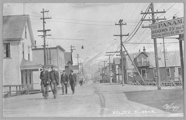 Valdez, AK c.1908, Wooden Street Boardwalk, Variety of Utility Openwire Lines