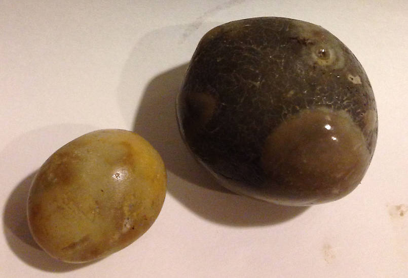 Deep down in the ground, about 5 feet deep in the layer that has the insulators, plaster moulds, and clay; I kept finding these golf ball sized pieces of flint stuck in these huge masses of the porcelain clay. The rocks looked like they had been polished. It then dawned on me that these were the stones that New Lexington was using in their ball mills! Absolutely incredible! This is the first time anyone in the hobby has found the actual components used for processing porcelain insulators. Modern ball mills use high alumina spheres that minimize the contamination. It is interesting comparing the old insulator manufacturing methods to the modern day technology. You might say the insulators New Lexington made worked... |