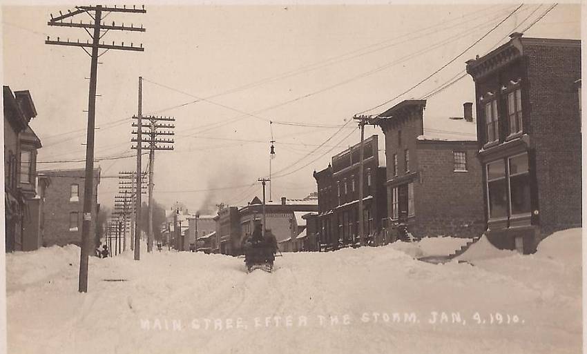 Everything else seemed to have held together okay including the electric lighting circuits along the right side of this Wisconsin business district including the spanwire arc street light that illuminated its centre.