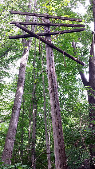 In advance of a future dig, I found this guy still standing in Forestville along the old Hartford, Providence & Fishkill. Strange to see side pins on a "modern" pole. Much too hot today to go beyond a superficial scratch 'n sniff...which yielded numerous shards. The dry creek bed below the pole is choked with roots and will require a pick axe and cooler temperatures. |